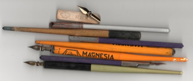 Il materiale scolastico era certamente essenziale e prevedeva penne da calamaio e matite,